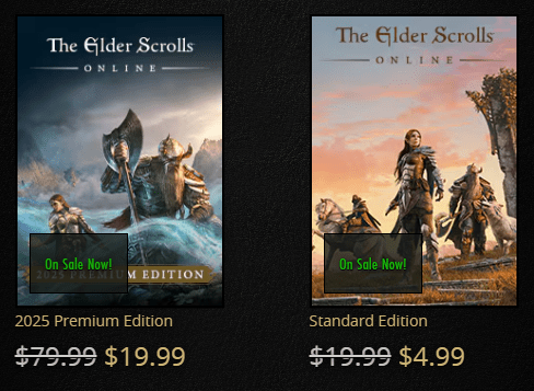 Wait… everything’s actually on sale right now. As I was wrapping up this blog post and preparing the video to go live, a sale kicked off. The Premium Edition of ESO is on sale for $20 and the Standard is going for $5 on the official Zenimax shop. That is an absolute steal! If you’ve gotten this far, you may as well get the Premium Edition for $20, even if you plan to subscribe. I don’t get any commission or anything like that, but this is literally hundreds of hours of questing for the price of like… one drink at a nice bar.